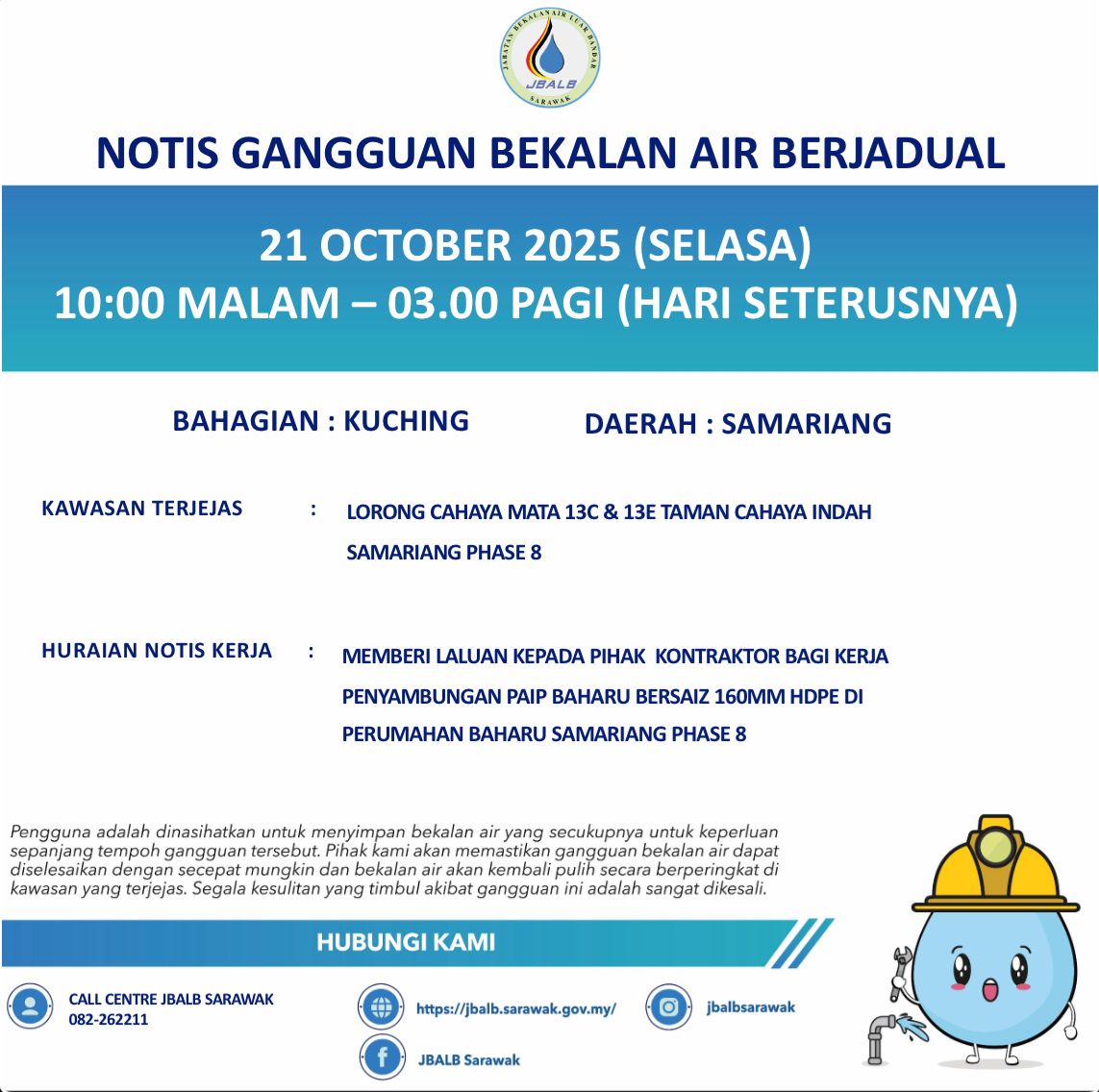 Scheduled Water Interruption Notice at Kuching (Samariang) (21.10.2025)