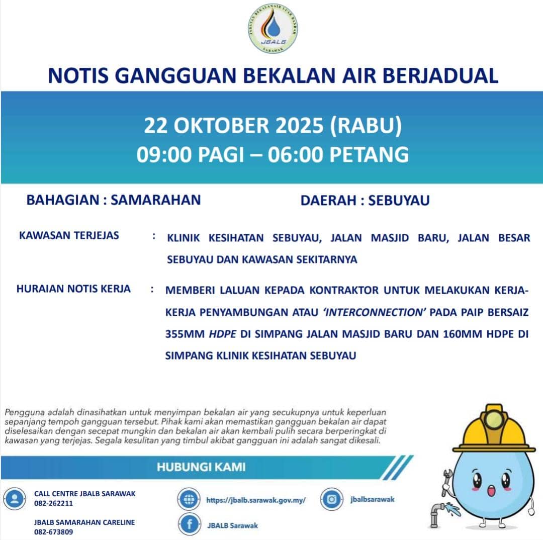 Scheduled Water Interruption Notice at Samarahan (Sebuyau) (22.10.2025)