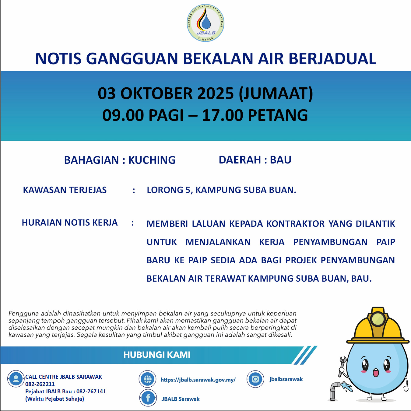 Scheduled Water Interruption Notice at Kuching (Bau) (03.10.2025)