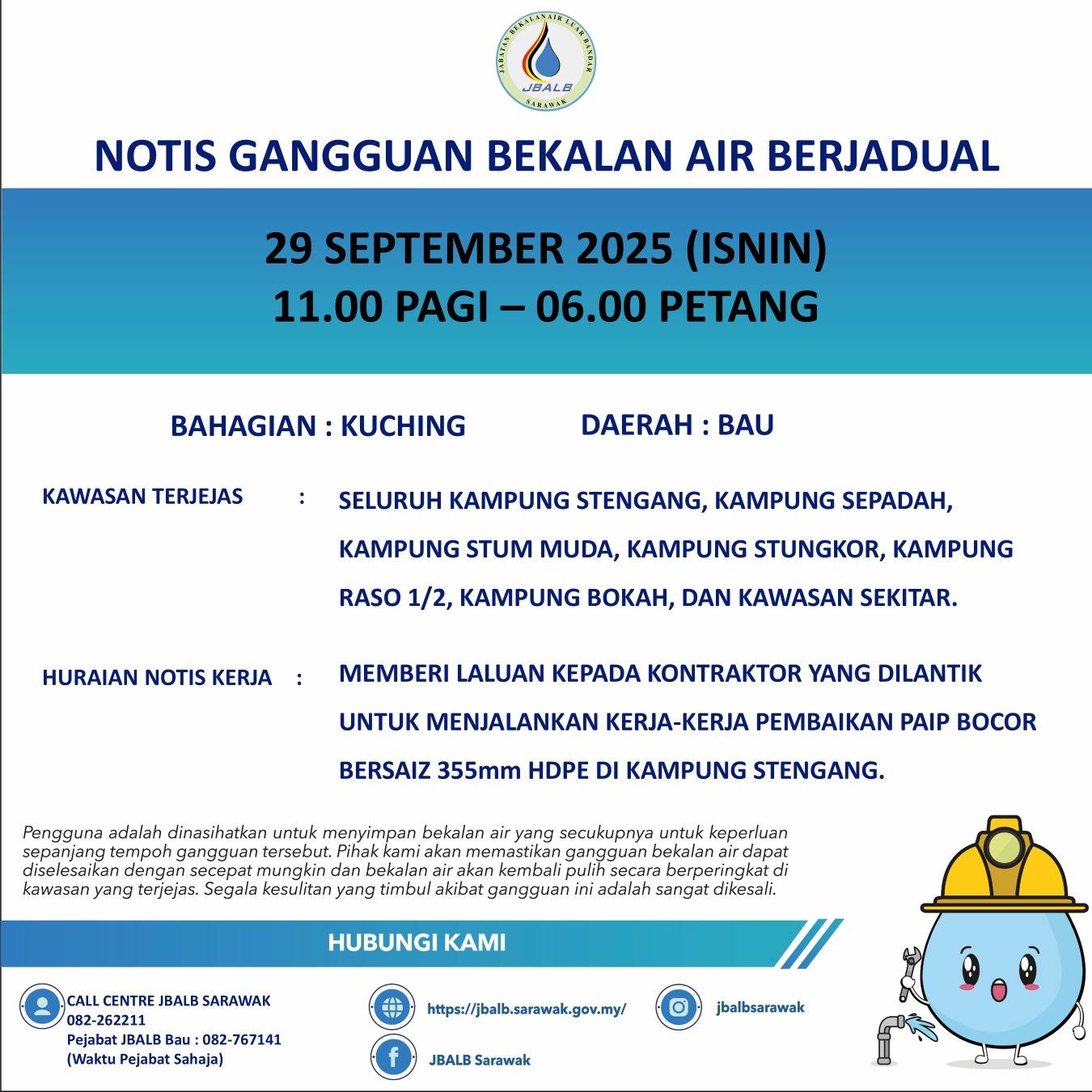 Scheduled Water Interruption Notice at Kuching (Bau) (29.09.2025)