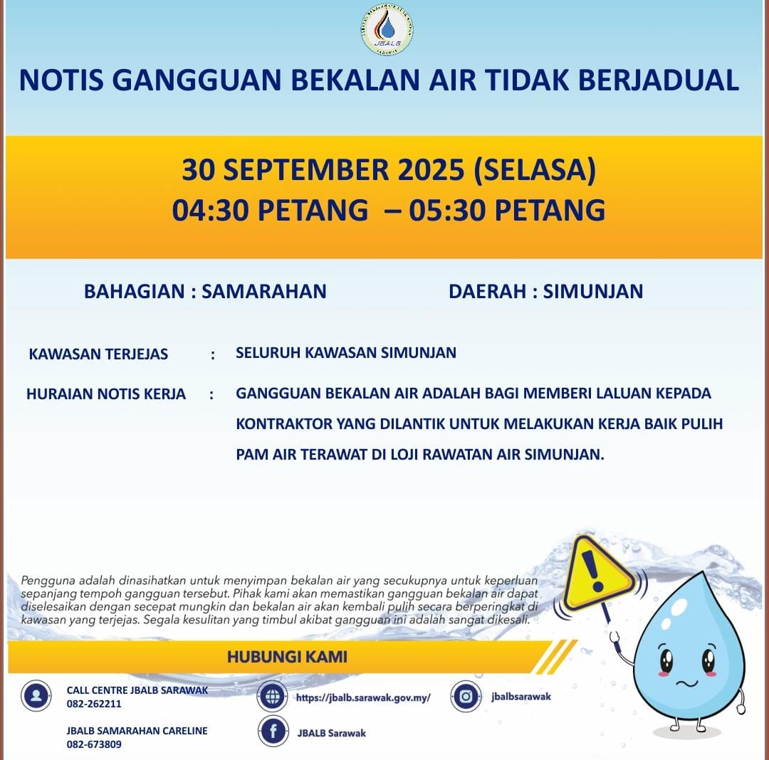 Unscheduled Water Interruption Notice at Samarahan (Simunjan) (30.09.2025)