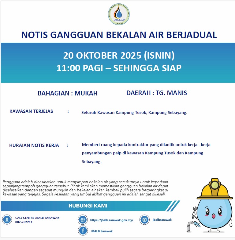 Scheduled Water Interruption Notice at Mukah (Tg. Manis) (20.10.2025)