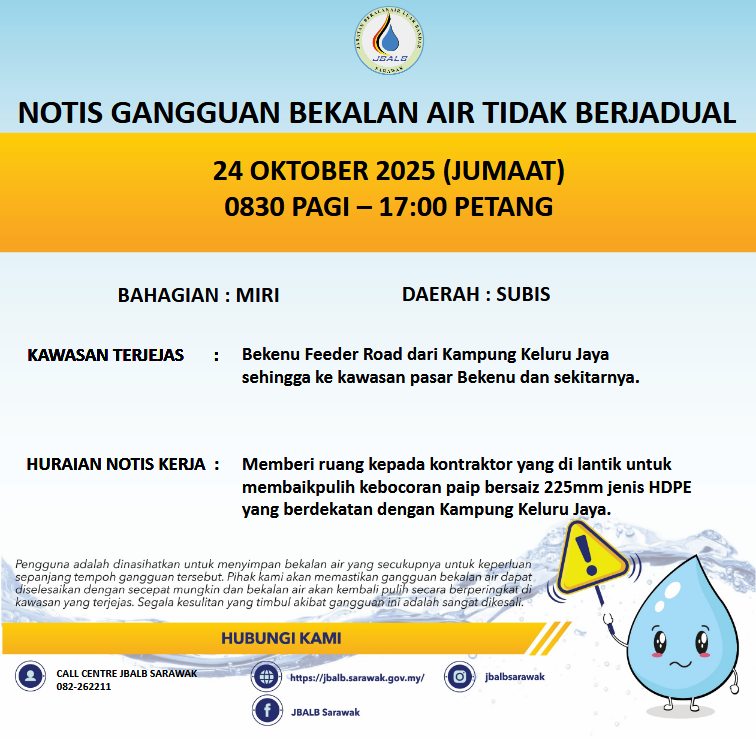 Unscheduled Water Interruption Notice at Miri (Subis) (24.10.2025)