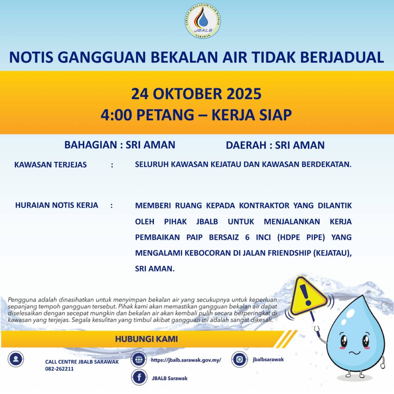 Unscheduled Water Interruption Notice at Sri Aman (24.10.2025)