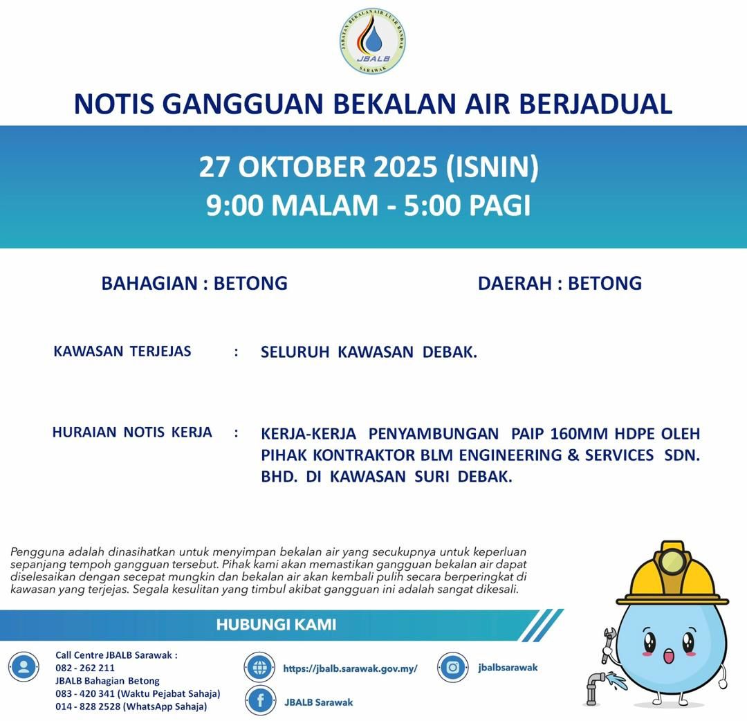 Scheduled Water Interruption Notice at Betong (27.10.2025)