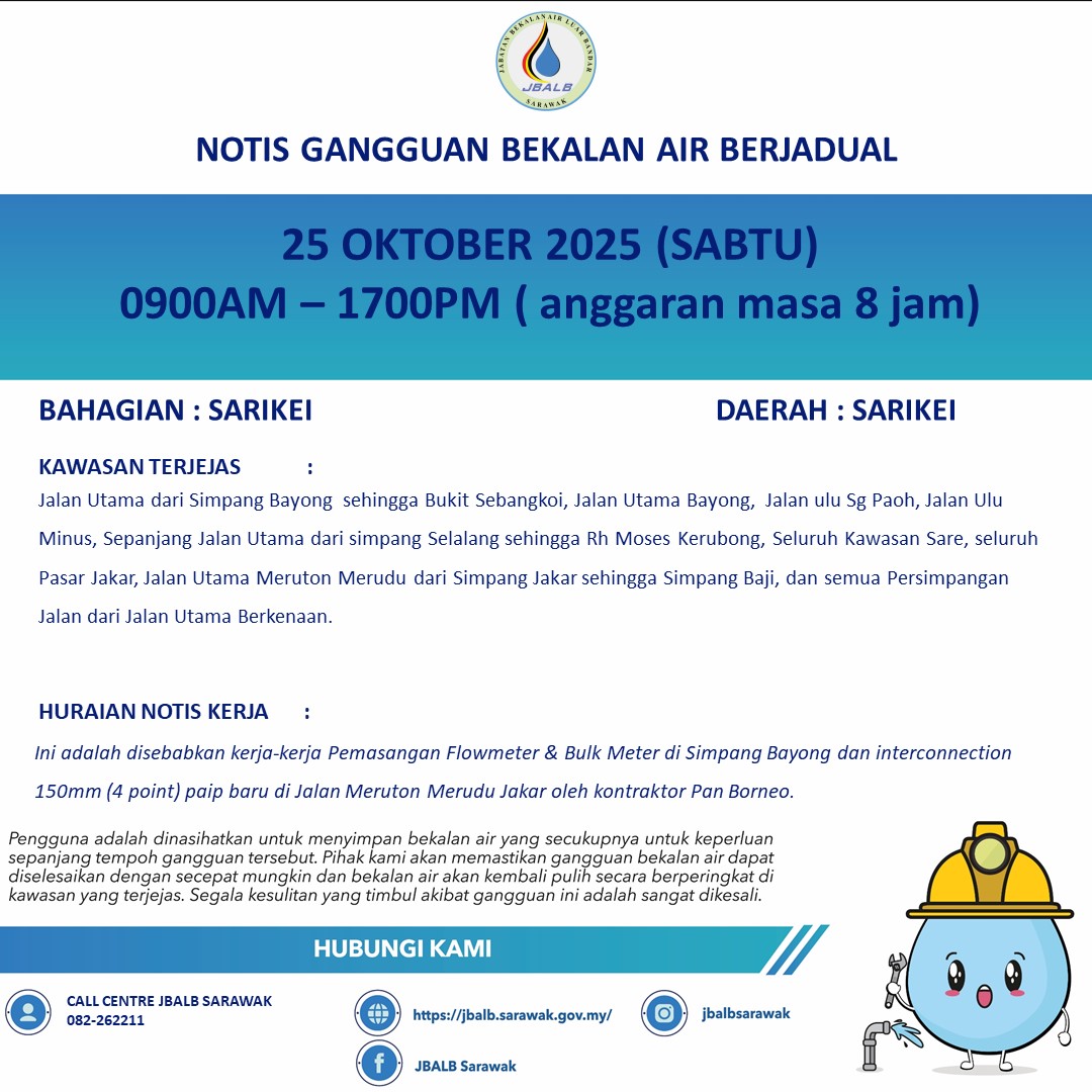 Scheduled Water Interruption Notice at Sarikei (25.10.2025)