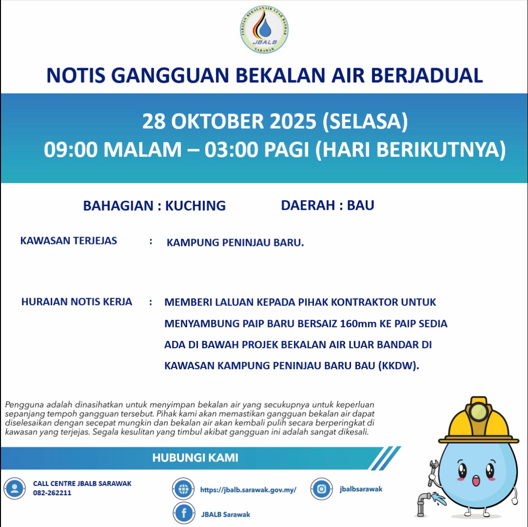 Scheduled Water Interruption Notice at Kuching (Bau) (28.10.2025)