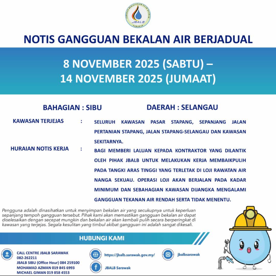 Scheduled Water Interruption Notice at Sibu (Selangau) (08-14.11.2025)