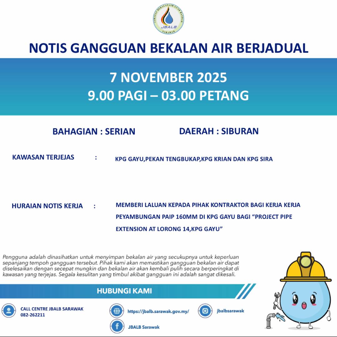 Scheduled Water Interruption Notice at Serian (07.11.2025)