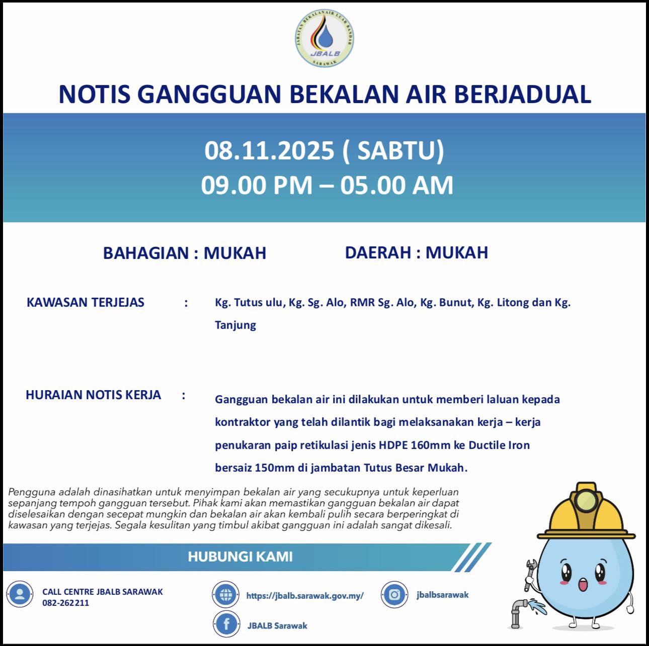 Scheduled Water Interruption Notice at Mukah (08.11.2025)