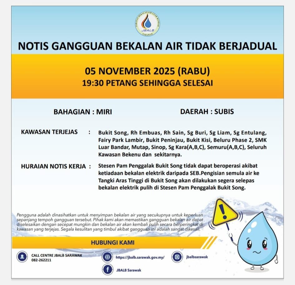 Unscheduled Water Interruption Notice at Miri (Subis) (05.11.2025)