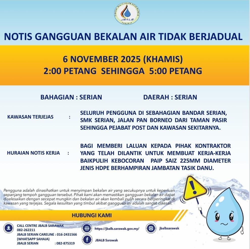 Unscheduled Water Interruption Notice at Serian (06.11.2025)