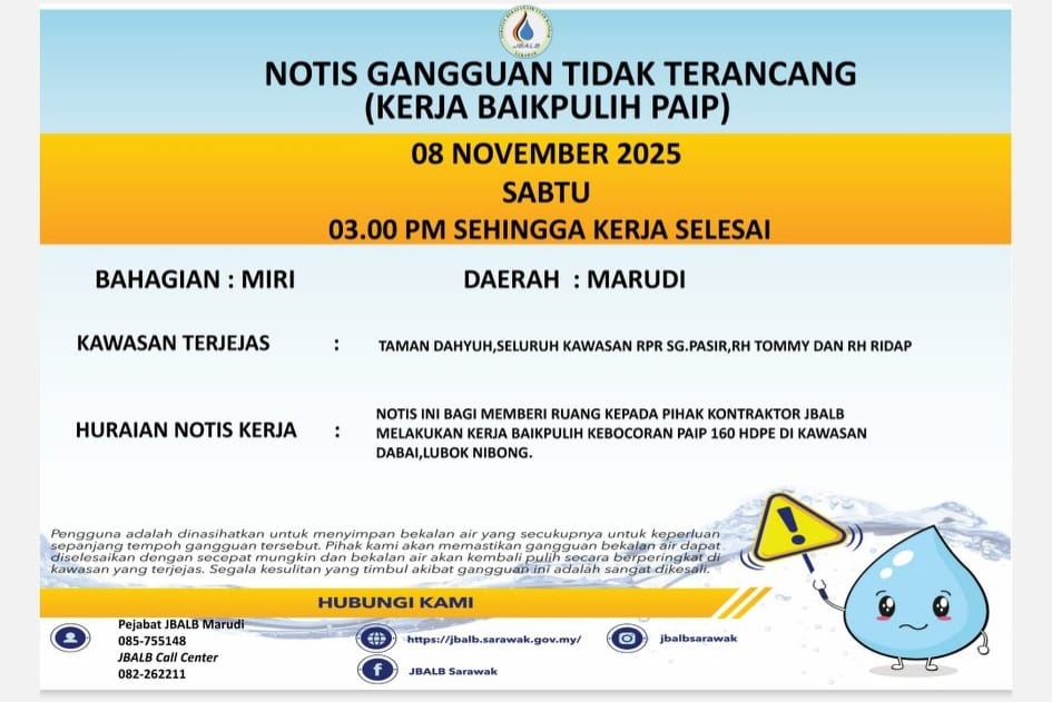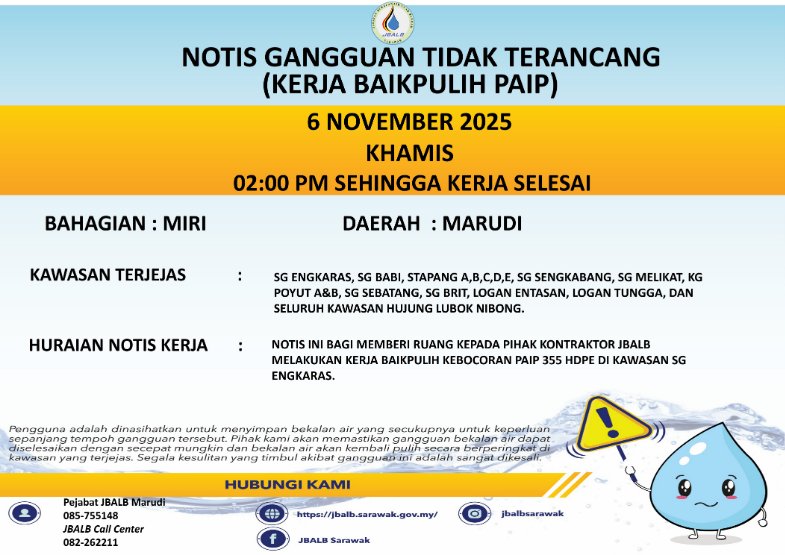 Unscheduled Water Interruption Notice at Miri (Marudi) (06.11.2025)