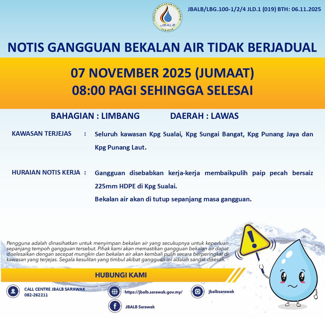 Unscheduled Water Interruption Notice at Limbang (Lawas) (07.11.2025)