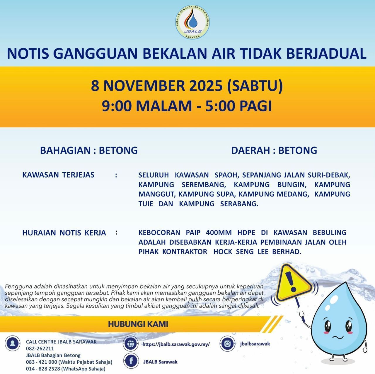 Unscheduled Water Interruption Notice at Betong (08.11.2025)