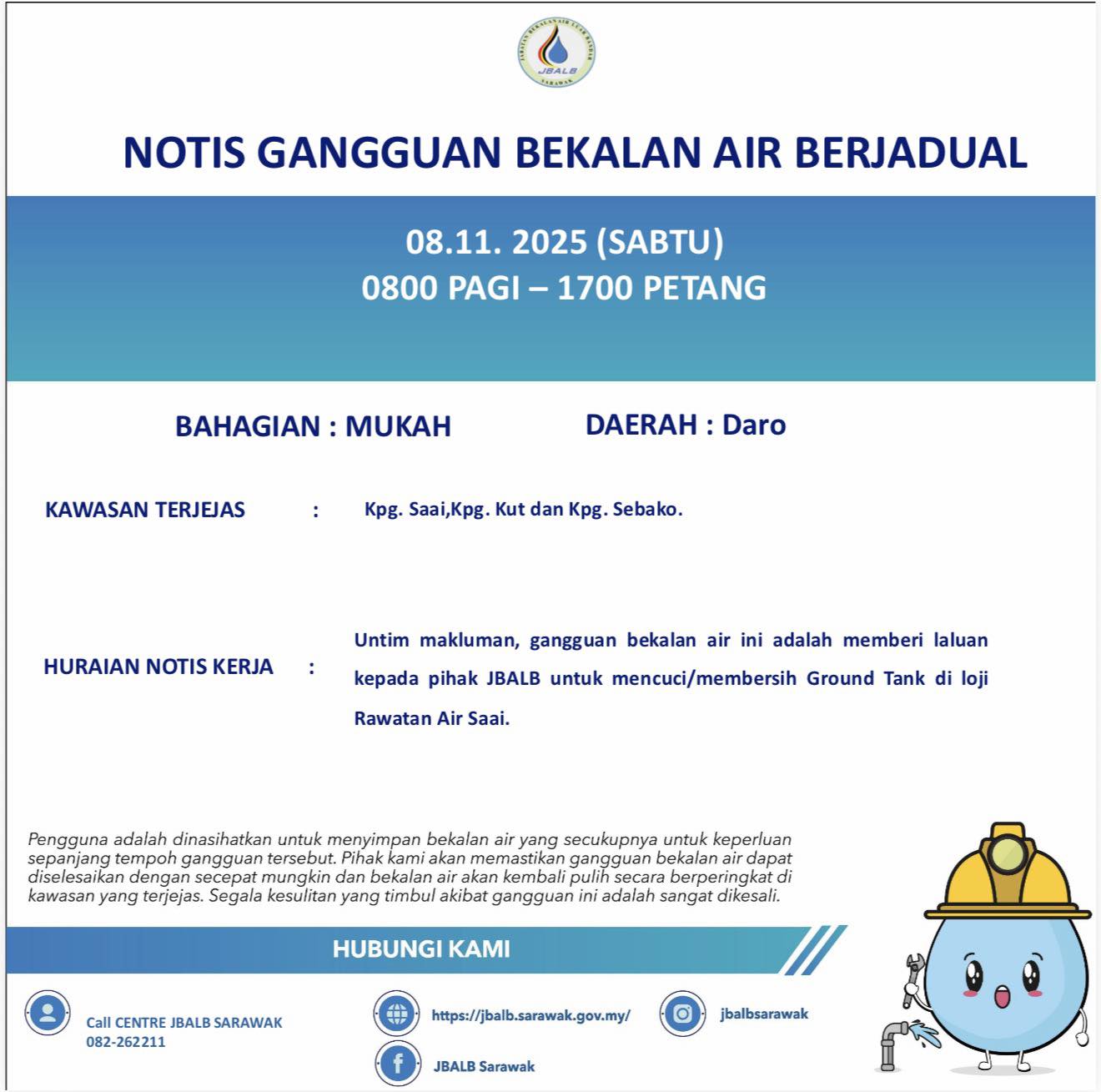Scheduled Water Interruption Notice at Mukah (Daro) (08.11.2025)