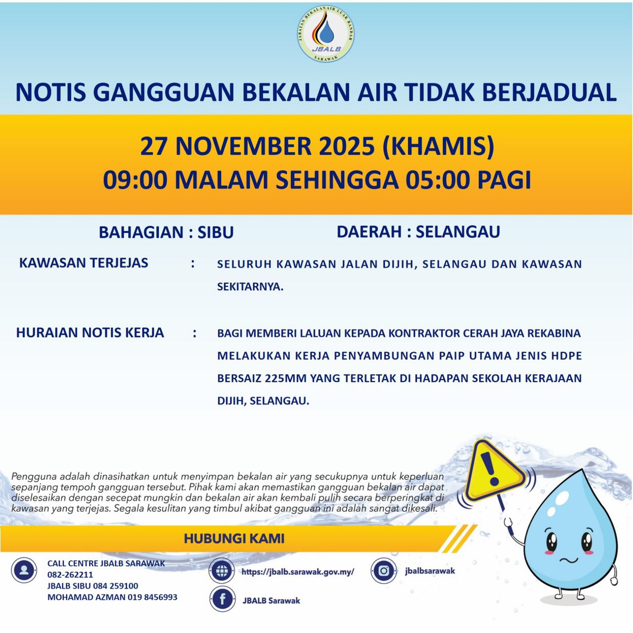 Unscheduled Water Interruption Notice at Sibu (Selangau) (27.11.2025)