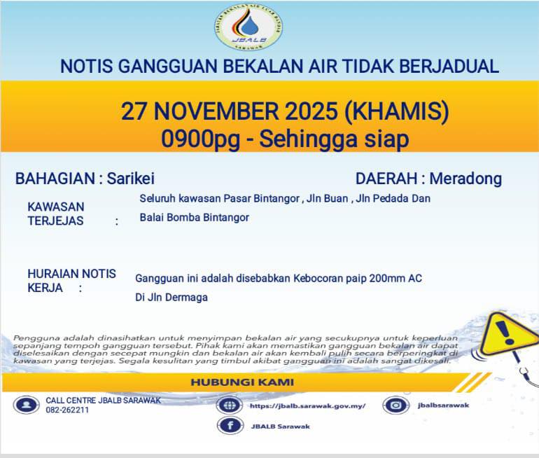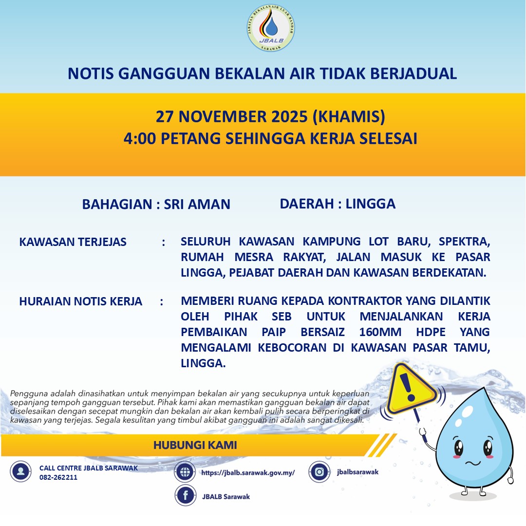 Unscheduled Water Interruption Notice at Sri Aman (Lingga) (27.11.2025)