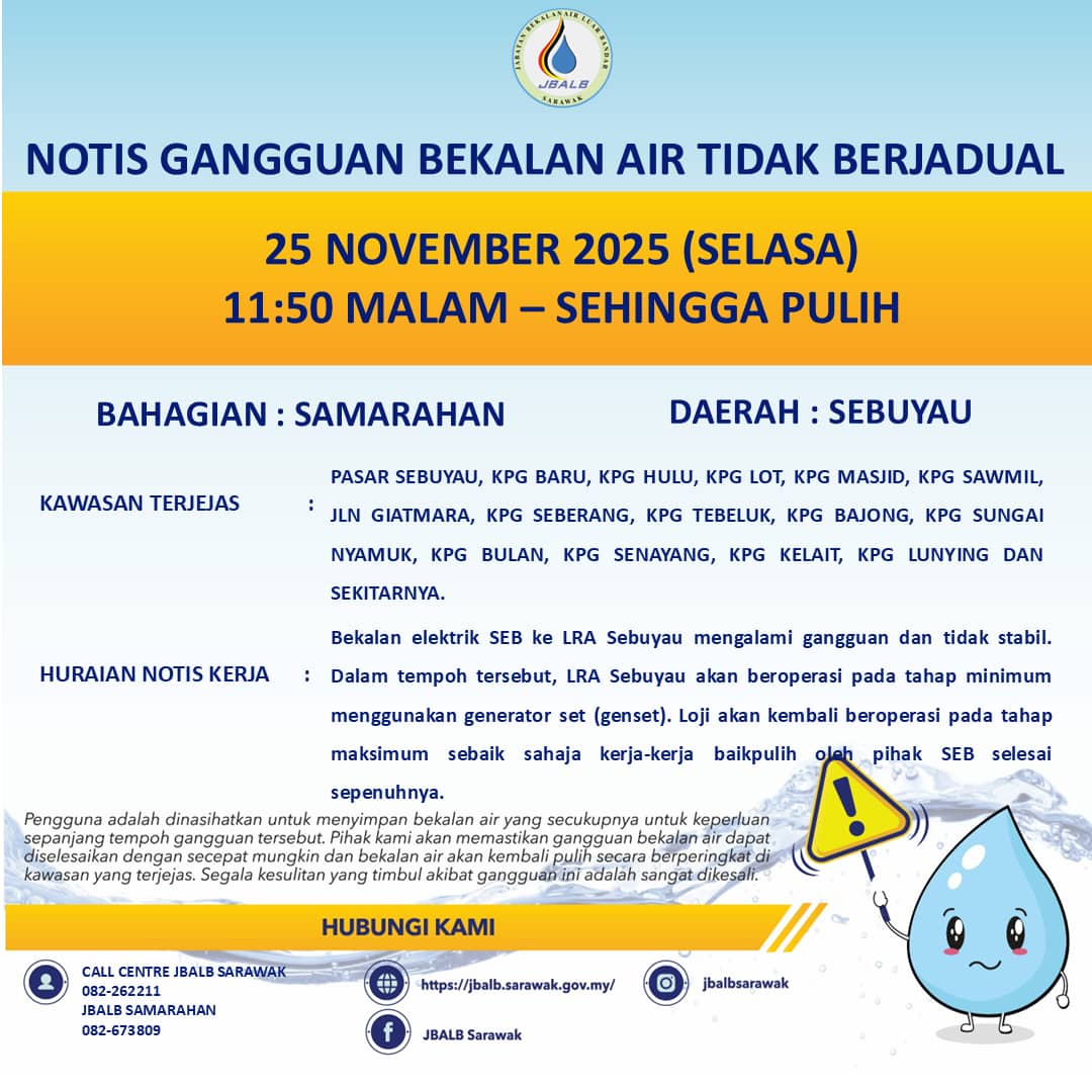 Unscheduled Water Interruption Notice at Samarahan (Sebuyau) (25.11.2025)