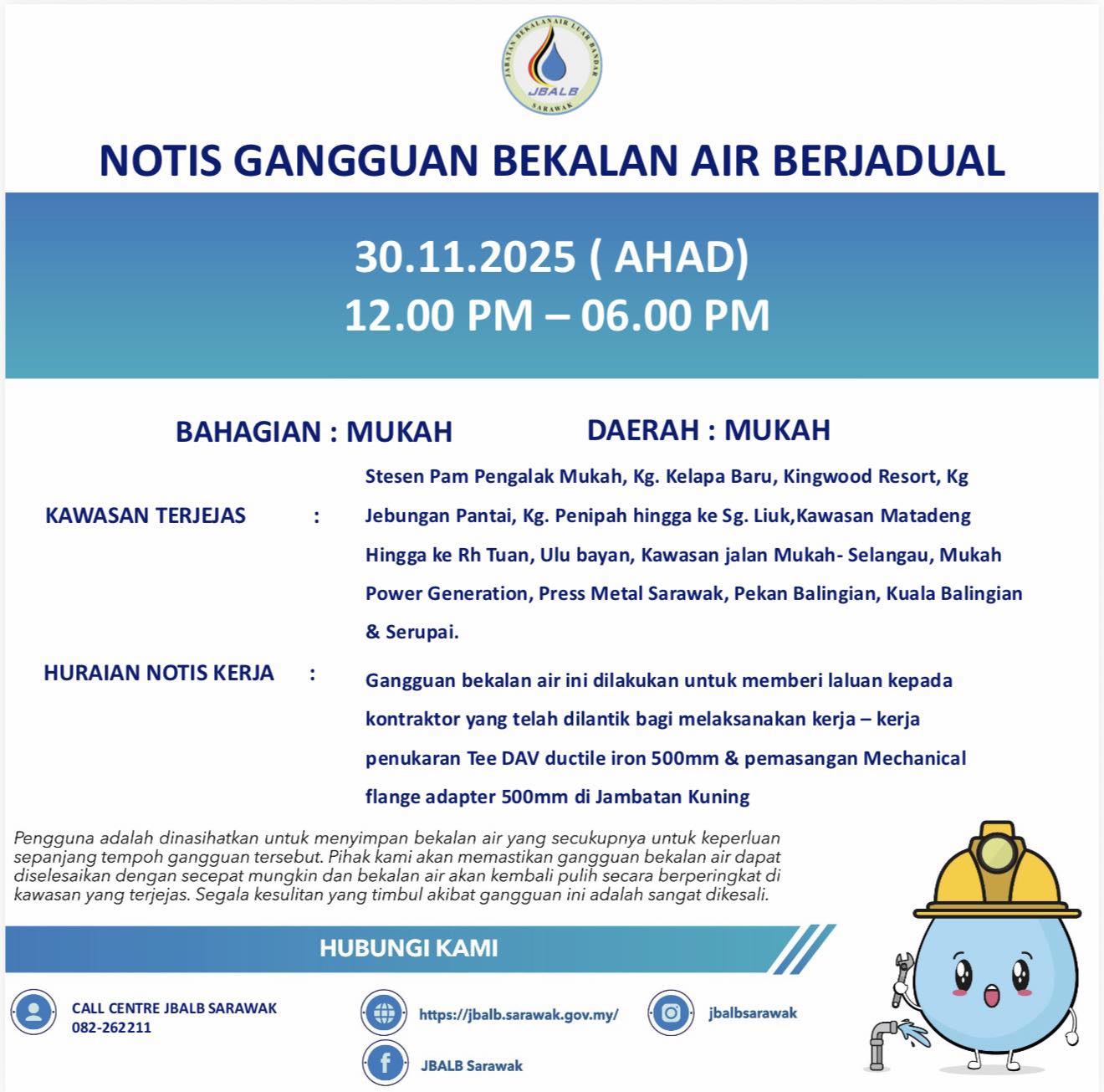 Scheduled Water Interruption Notice at Mukah (30.11.2025)
