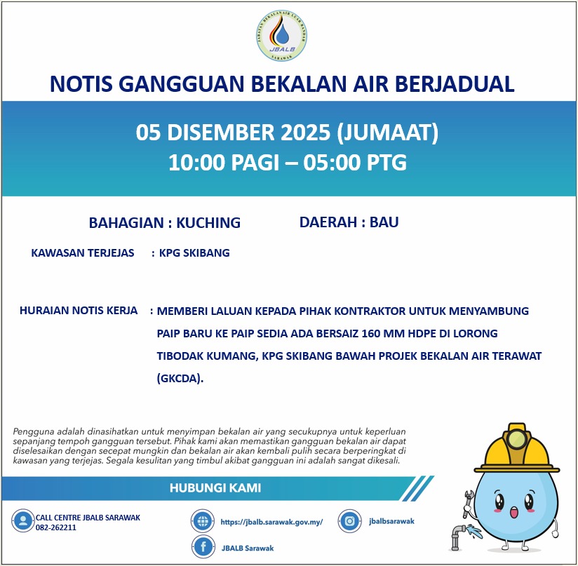 Scheduled Water Interruption Notice at Kuching (Bau) (05.12.2025)