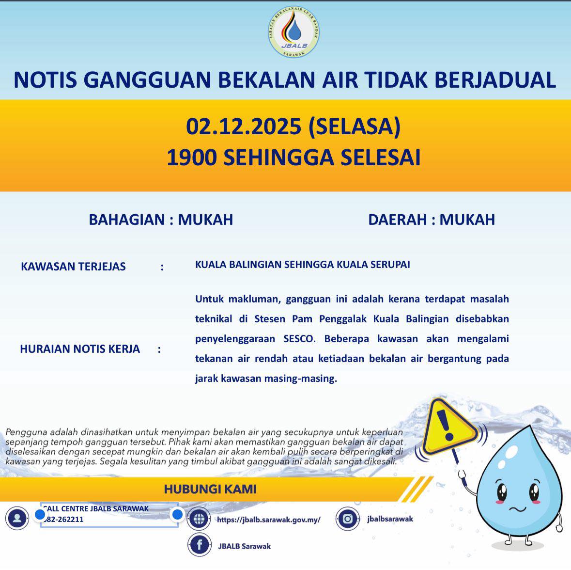 Unscheduled Water Interruption Notice at Mukah (02.12.2025)
