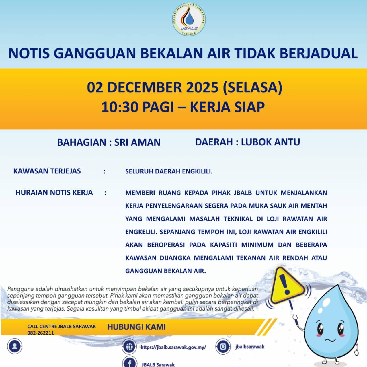 Unscheduled Water Interruption Notice at Sri Aman (Lubok Antu) (02.12.2025)