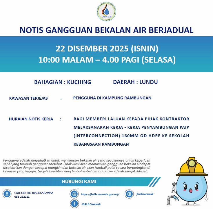 Scheduled Water Interruption Notice at Kuching (Lundu) (22.12.2025)