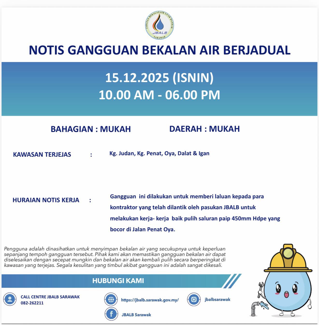 Scheduled Water Interruption Notice at Mukah (15.12.2025)