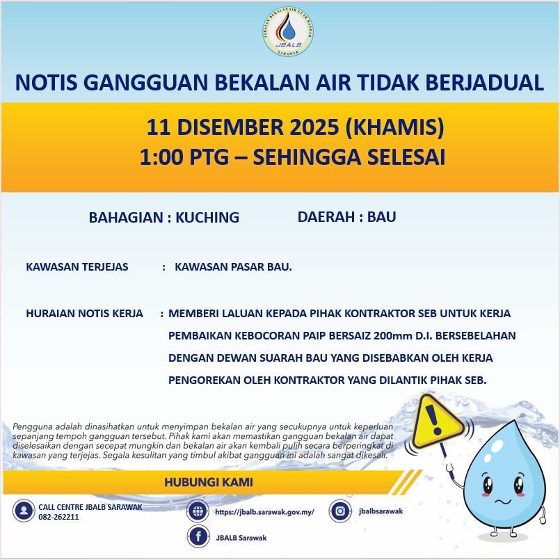Unscheduled Water Interruption Notice at Kuching (Bau) (11.12.2025)