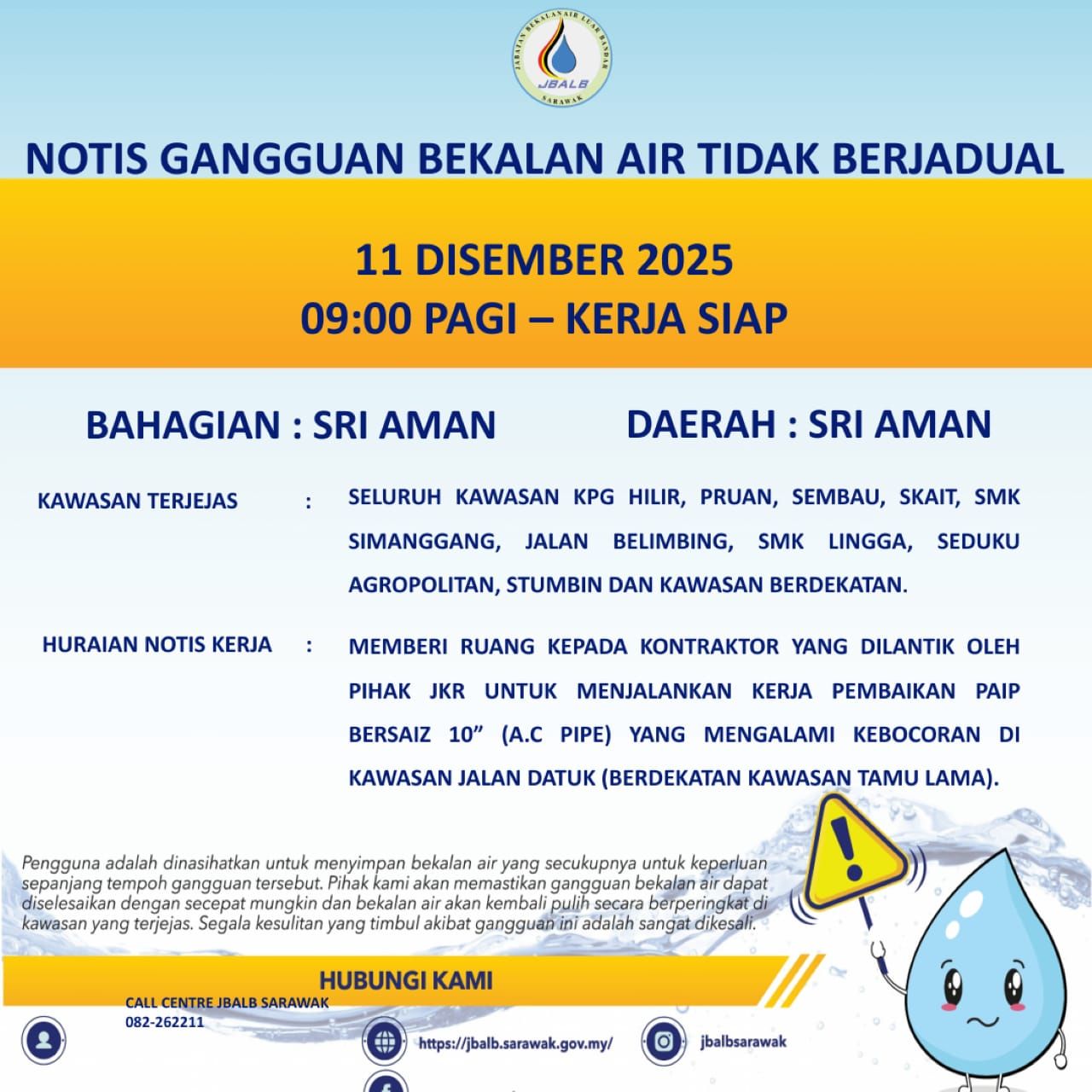 Unscheduled Water Interruption Notice at Sri Aman (11.12.2025)