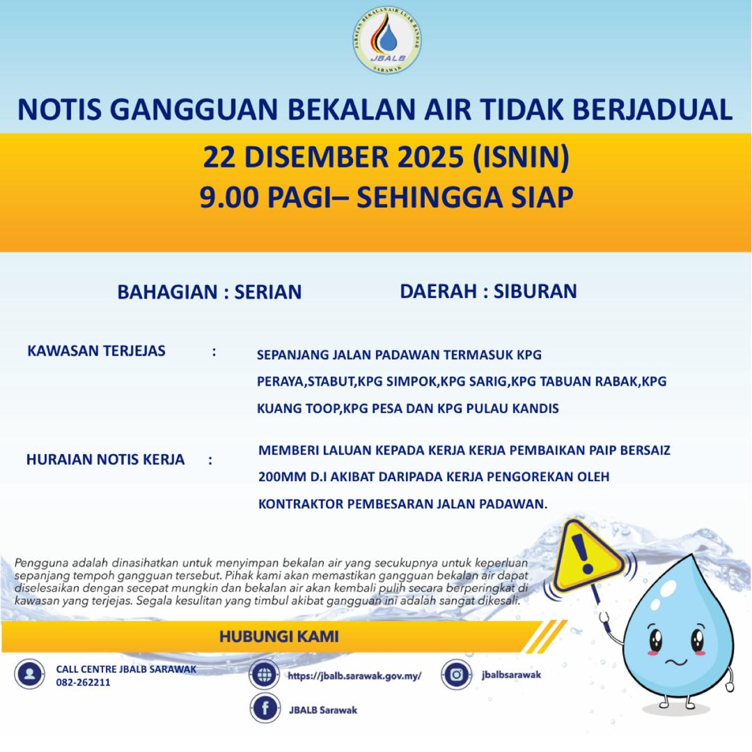 Unscheduled Water Interruption Notice at Serian (Siburan) (22.12.2025)