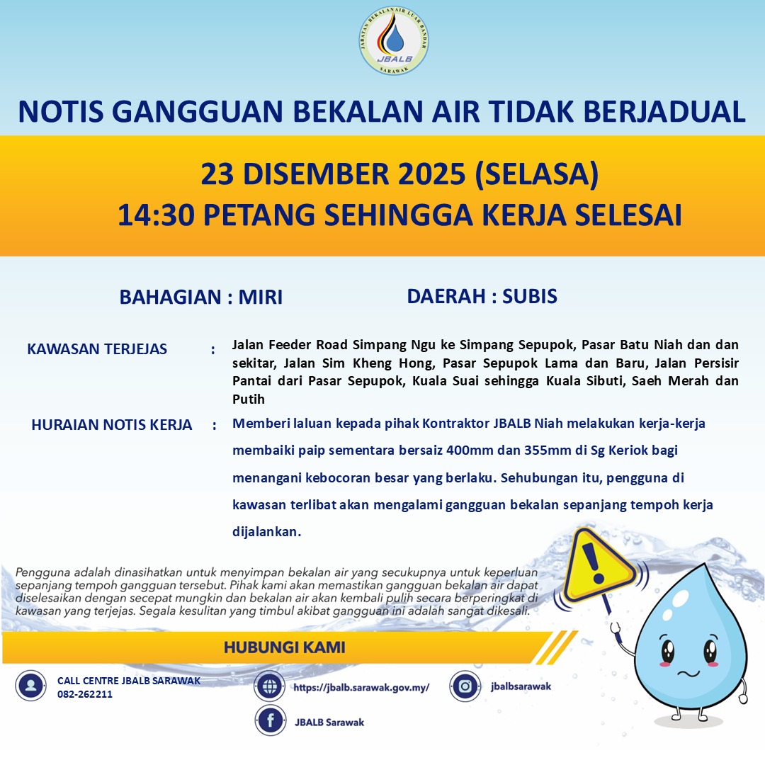 Unscheduled Water Interruption Notice at Miri (Subis) (23.12.2025)
