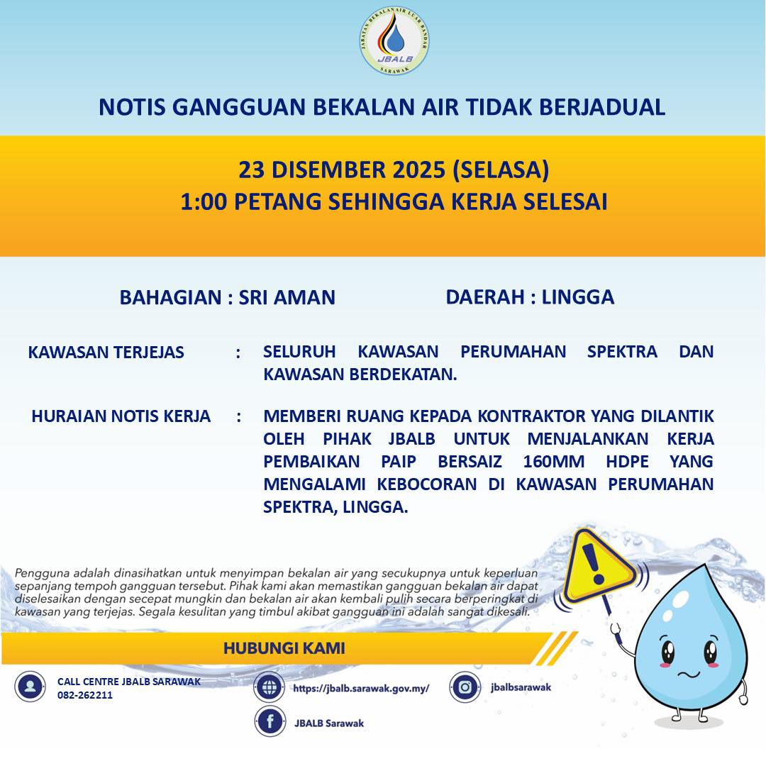Unscheduled Water Interruption Notice at Sri Aman (Lingga) (23.12.2025)