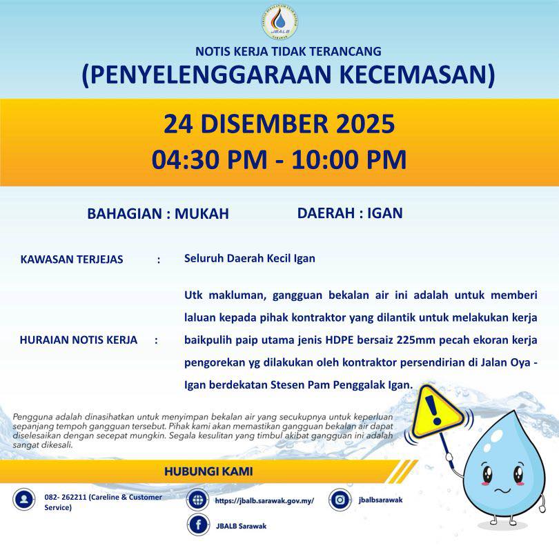 Unscheduled Water Interruption Notice at Mukah (Igan) (24.12.2025)