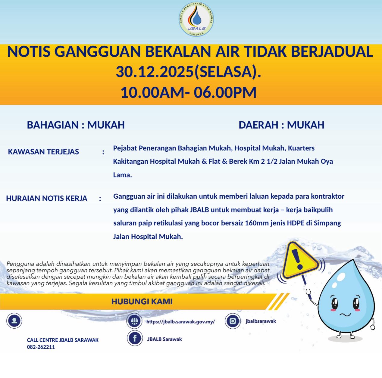 Unscheduled Water Interruption Notice at Mukah (30.12.2025)
