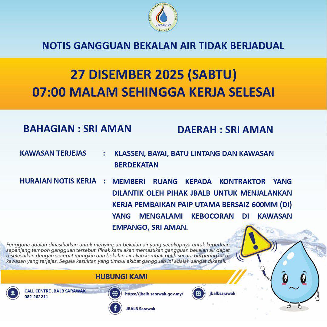 Unscheduled Water Interruption Notice at Sri Aman (Lingga) (30.12.2025)