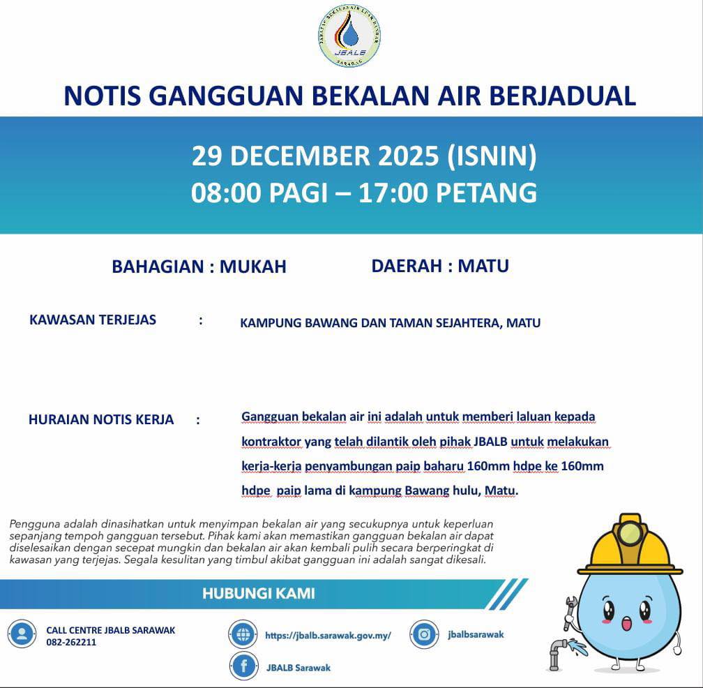 Unscheduled Water Interruption Notice at Sri Aman (Lingga) (30.12.2025)