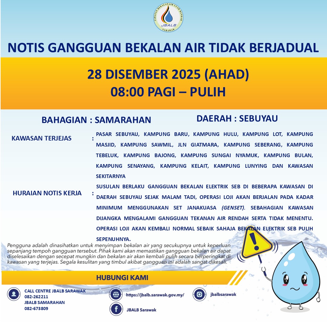 Unscheduled Water Interruption Notice at Samarahan (Sebuyau) (28.12.2025)