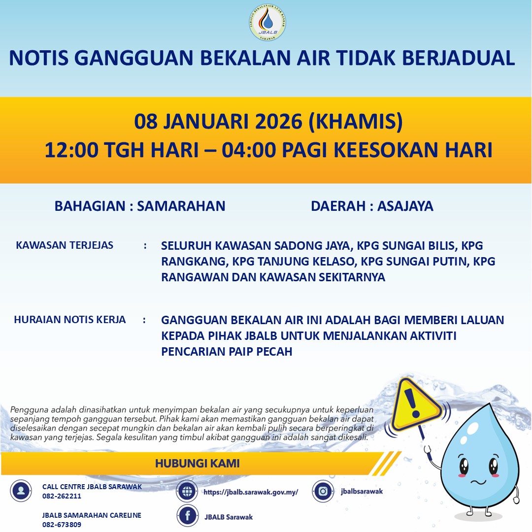 Unscheduled Water Interruption Notice at Samarahan (Asajaya) (08.01.2026)