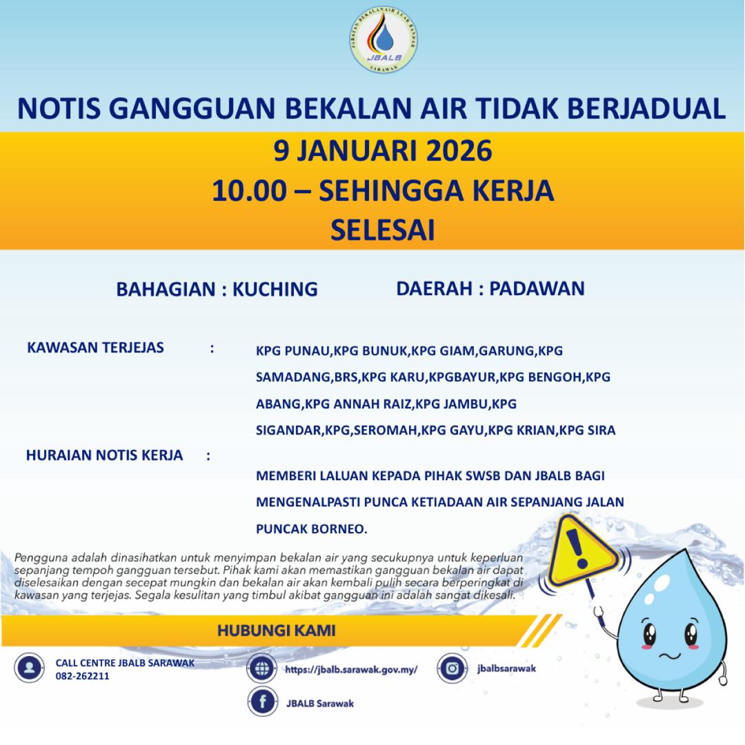 Unscheduled Water Interruption Notice at Kuching (Padawan) (09.01.2026)
