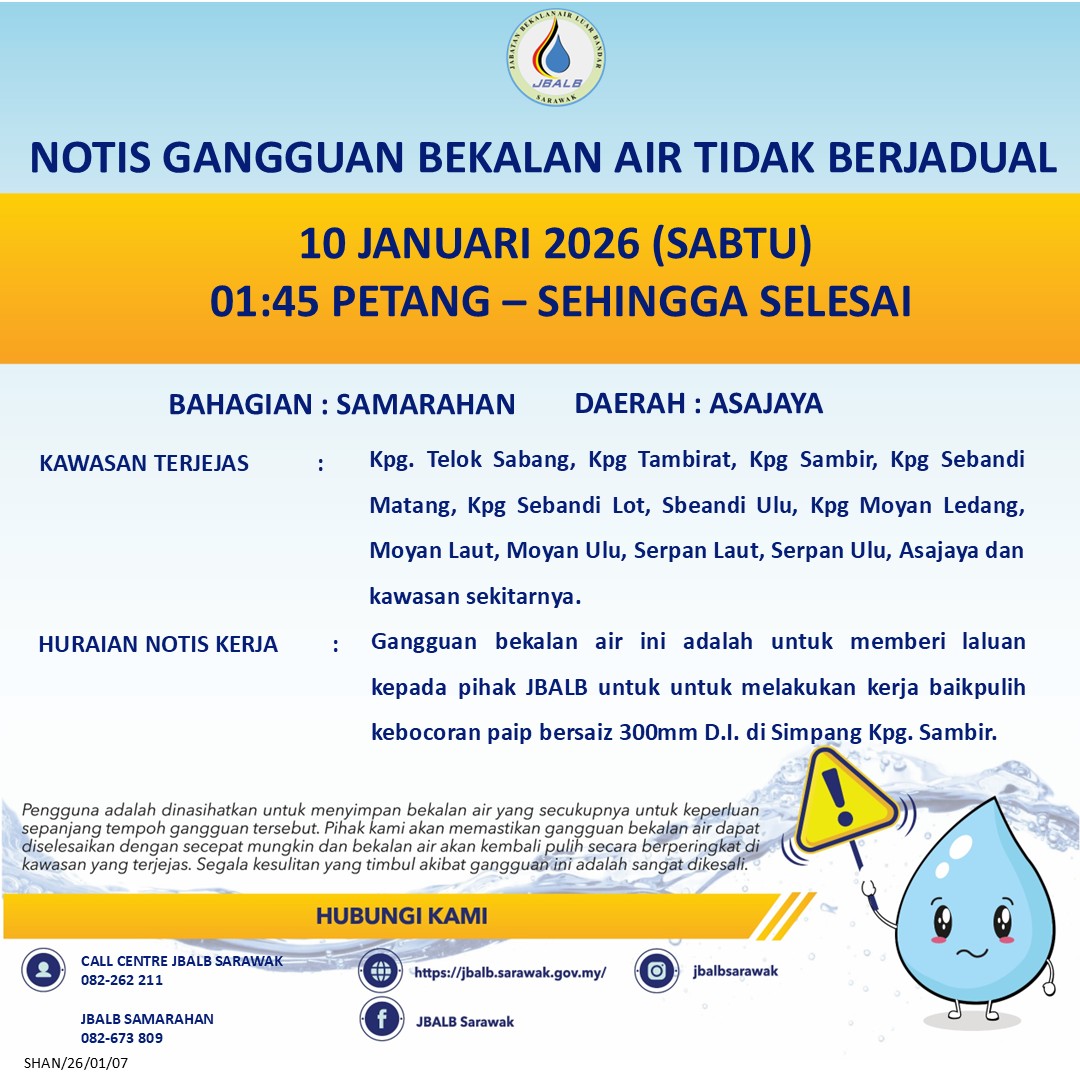 Unscheduled Water Interruption Notice at Samarahan (Asajaya) (10.01.2026)