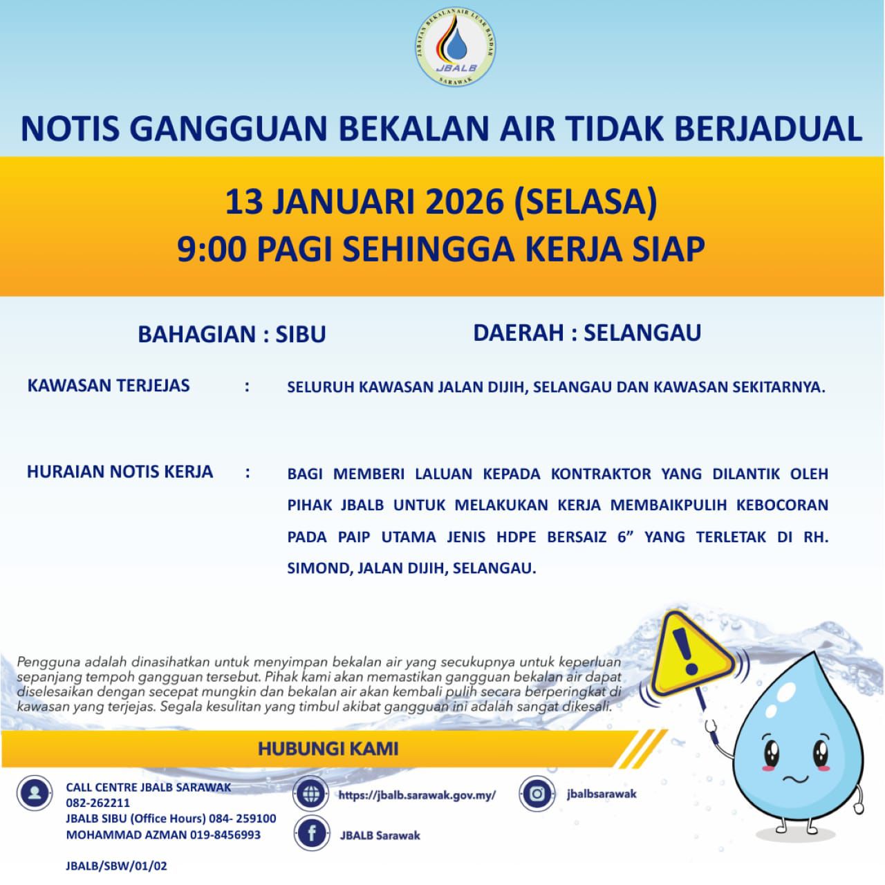 Unscheduled Water Interruption Notice at Sibu (Selangau) (13.01.2026)