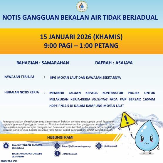 Unscheduled Water Interruption Notice at Samarahan (Asajaya) (15.01.2026)