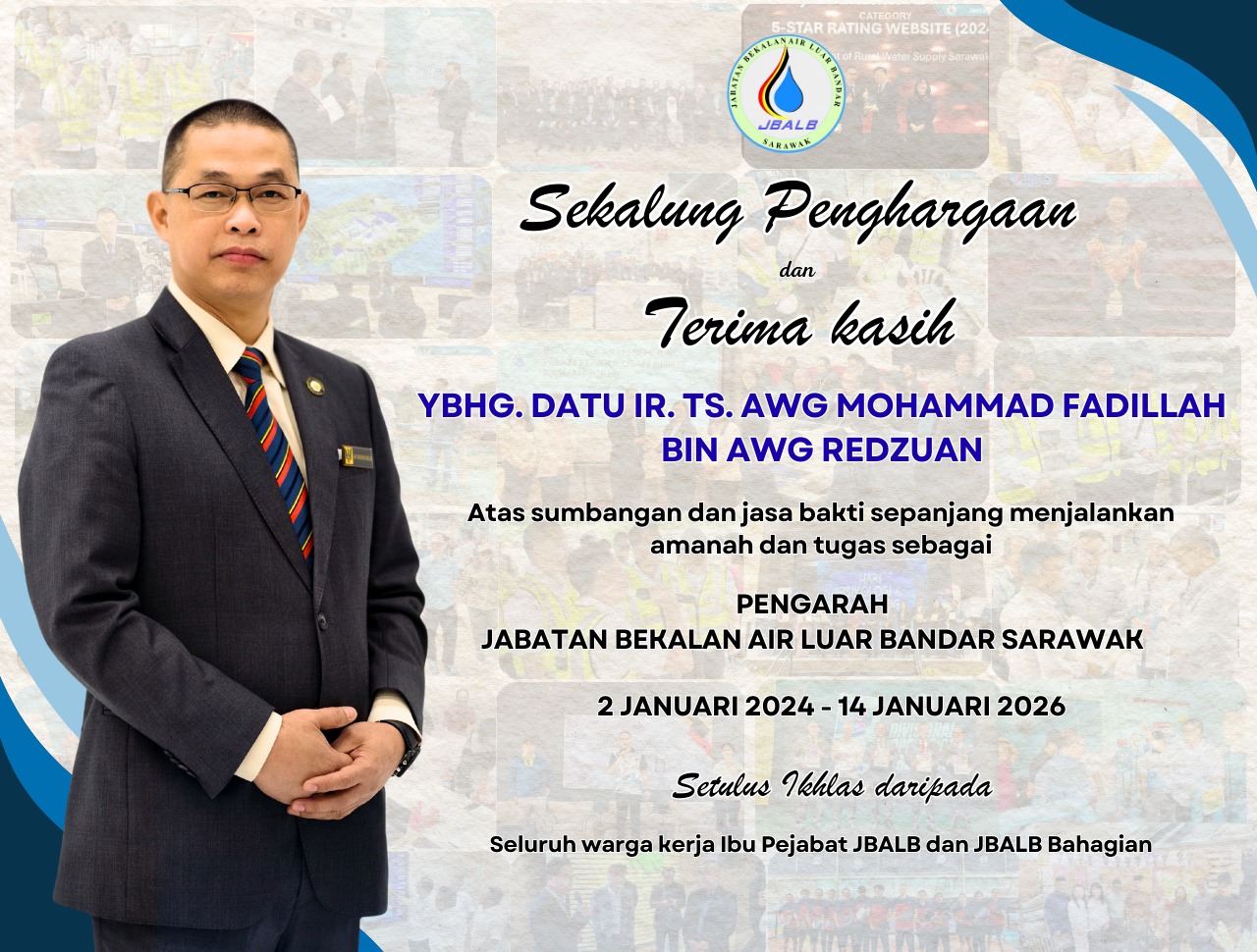 JBALB SARAWAK RAKAM SETINGGI-TINGGI UCAPAN PENGHARGAAN KEPADA YANG BERBAHAGIA DATU IR. TS. AWG MOHAMMAD FADILLAH AWG REDZUAN