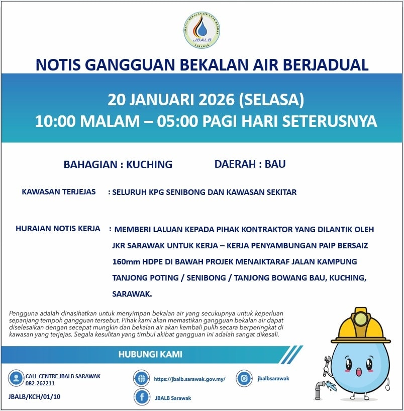 Scheduled Water Interruption Notice at Kuching (Bau) (20.01.2026)