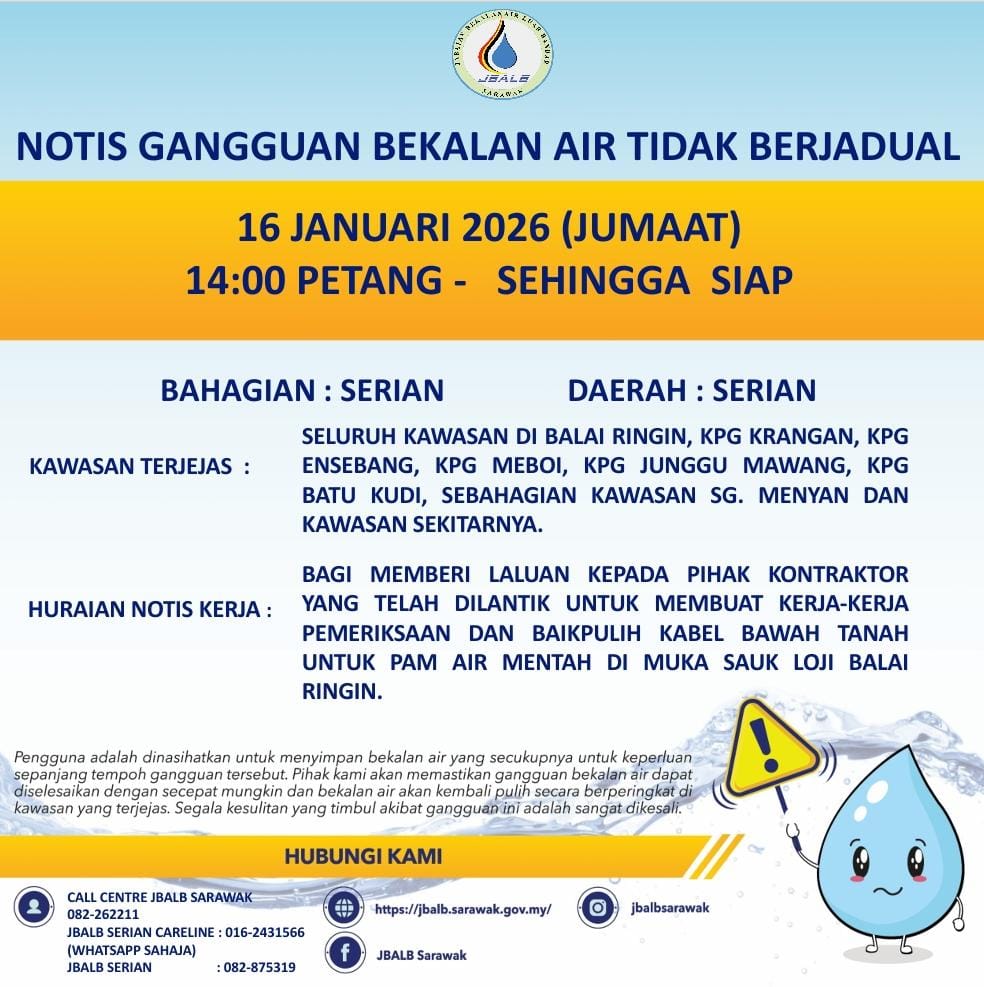 Unscheduled Water Interruption Notice at Serian (16.01.2026)