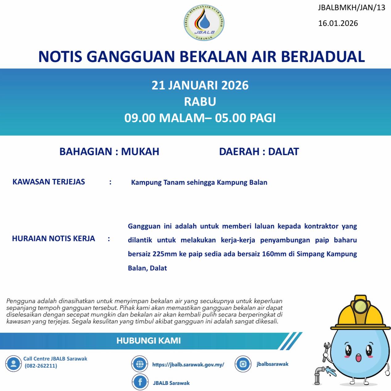 Unscheduled Water Interruption Notice at Mukah (Matu) (16.01.2026)