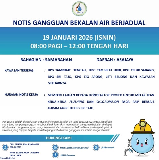 Scheduled Water Interruption Notice at Samarahan (Asajaya) (19.01.2026)