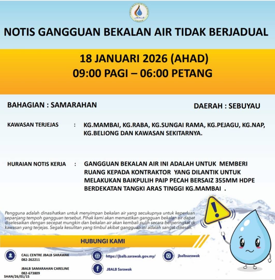 Unscheduled Water Interruption Notice at Samarahan (Sebuyau) (18.01.2026)